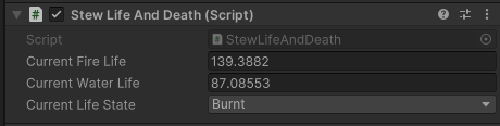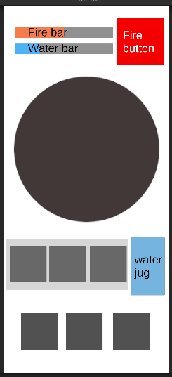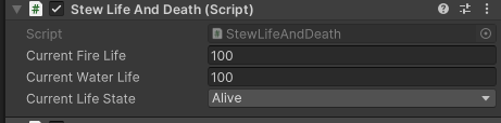 I was looking at the documents in my cloud a couple days ago when I saw it, and remembered I *had a very important pending game to make*. This game wouldn't make sense in any other form than mobile, and I was playing with Monogame until now, but I have absolutely no idea about mobile development in Monogame, so I googled and decided to go back to Unity for this project. And what a great idea it was, I feel like I'm doing everything 10 times faster than with monogame ^^' In two days I created the project, got familiar with the Unity application again and made a main scene with placeholders (I'm sorry it's so ugly but it works for me), fire and water level bars, and working buttons for those two elements, as well as defining in a very basic way all the "life" states of the stew (Alive + 4 ways to die). I also started thinking about how money could work in this game.